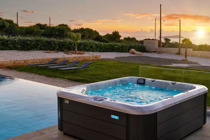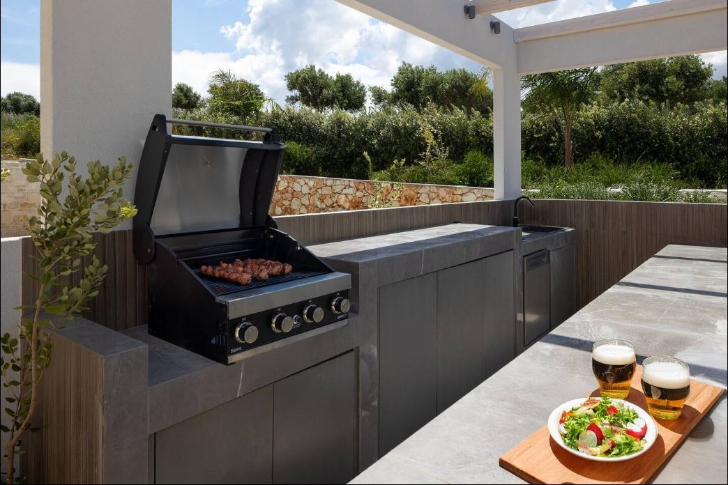 Διαθέτει ιδιωτική πισίνα, Jacuzzi, εξωτερικό ντους, μεγάλη βεράντα με καλυμμένο χώρο για φαγητό και εξωτερική κουζίνα με BBQ. Οι κήποι είναι πλήρως διαμορφωμένοι, το σπίτι έχει πέτρινους περιφραγμένους τοίχους, ιδιωτική είσοδο με ηλεκτρική πόρτα και αποθηκευτικό χώρο.