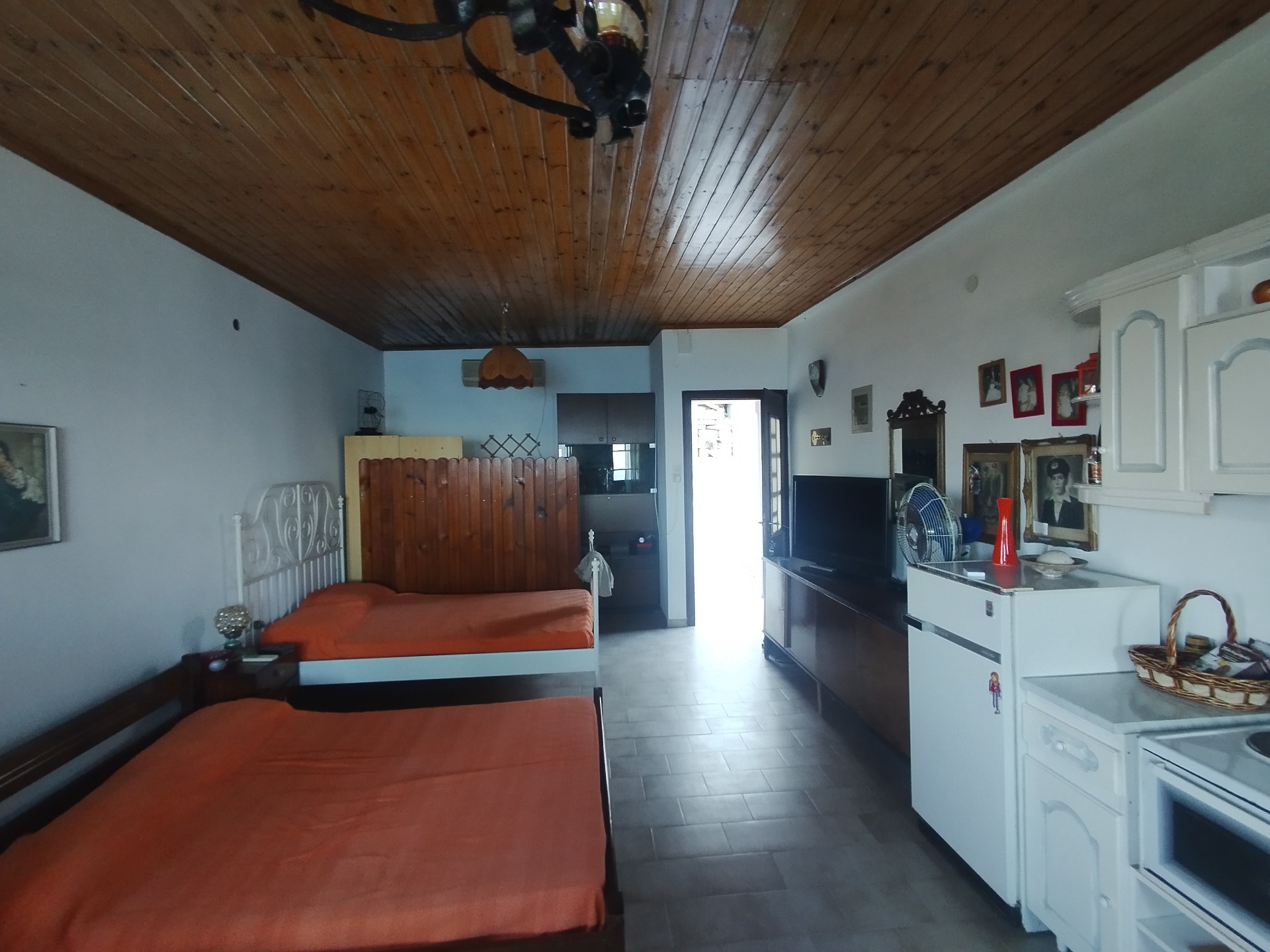 Στους Σπαθαραίους Σάμου διατίθεται προς πώληση διώροφη πέτρινη μονοκατοικία με είσοδο και από τους δύο ορόφους. Στο ισόγειο υπάρχει ένας ενιαίος χώρος που μπορεί να διαμορφωθεί σε υπνοδωμάτιο, καθώς και μπάνιο. Μέσω ξύλινης εσωτερικής σκάλας οδηγούμαστε στον επάνω όροφο, όπου βρίσκονται η κουζίνα και το σαλόνι σε ενιαία διάταξη. Από τον χώρο αυτό υπάρχει πρόσβαση σε μπαλκόνι με εντυπωσιακή πανοραμική θέα προς τη θάλασσα.