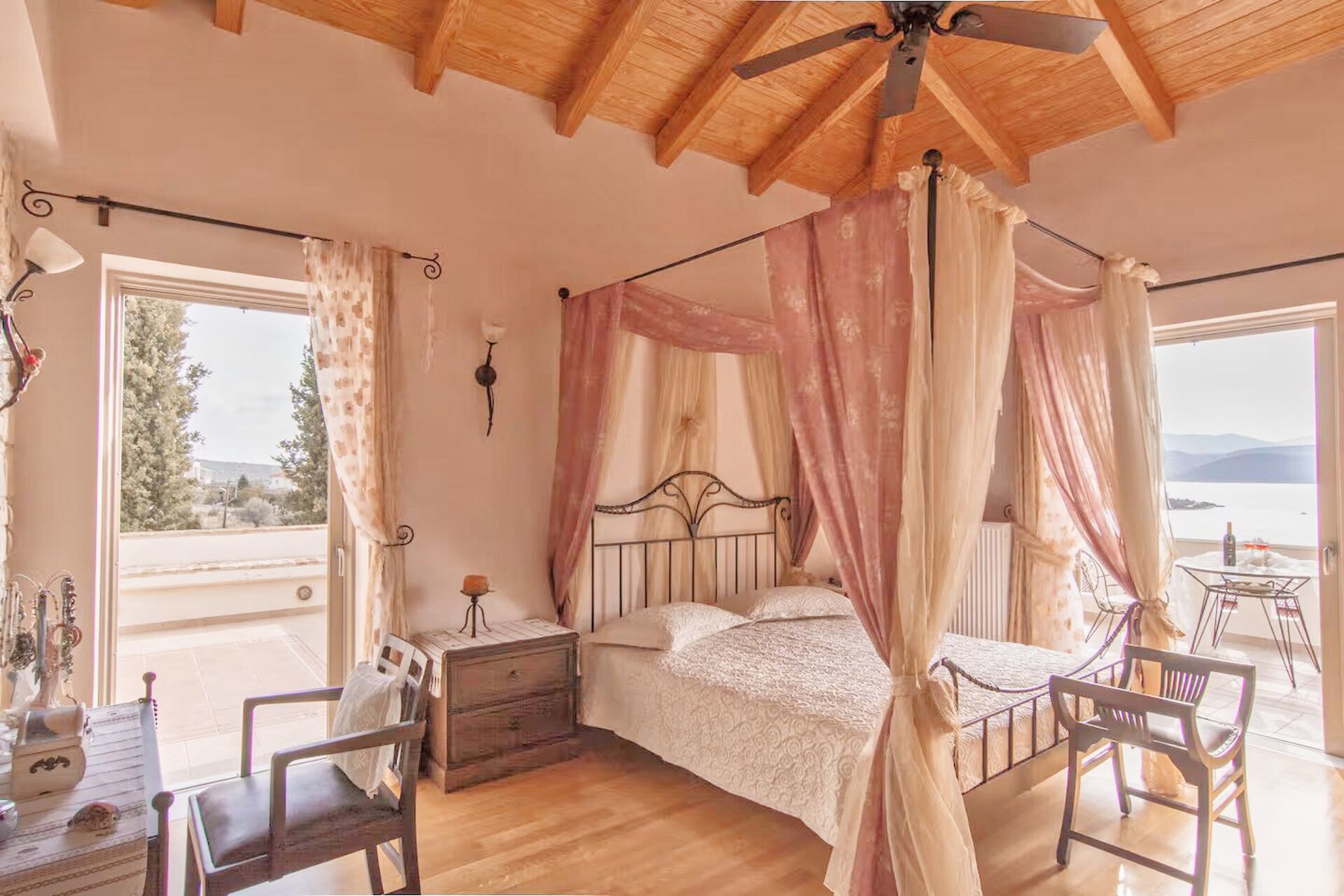 Το τρίτο επίπεδο περιλαμβάνει δύο υπνοδωμάτια με τα δικά τους μπαλκόνια και ένα μπάνιο με υδρομασάζ, ενώ στο πρώτο επίπεδο (ισόγειο) συναντάται ένα master υπνοδωμάτιο με ensuite μπάνιο και ένα ανεξάρτητο διαμέρισμα με δύο υπνοδωμάτια, μπάνιο, χώρο για κουζίνα και καθιστικό, ιδανικό για φιλοξενία ή βραχυχρόνια μίσθωση.