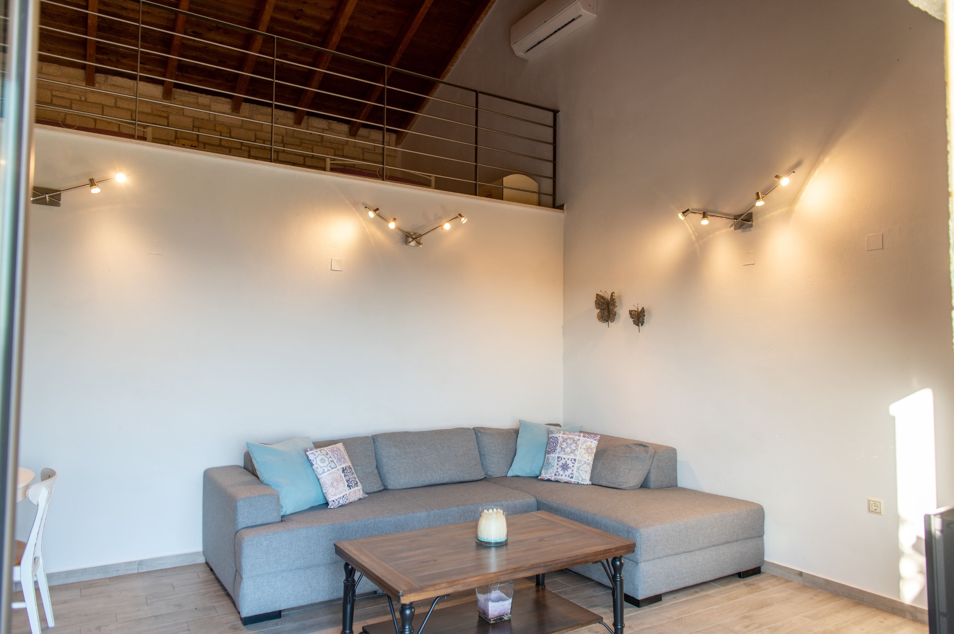 Ο α΄ όροφος με εμβαδόν 67 τ.μ. διαθέτει μεγάλο σαλόνι-κουζίνα,1/Δ, μπάνιο και όμορφη πλακόστρωτη βεράντα. Σε αυτόν τον όροφο υπάρχει υπερυψωμένος χώρος ( πατάρι) με ένα έξτρα 1 Υ/Δ.