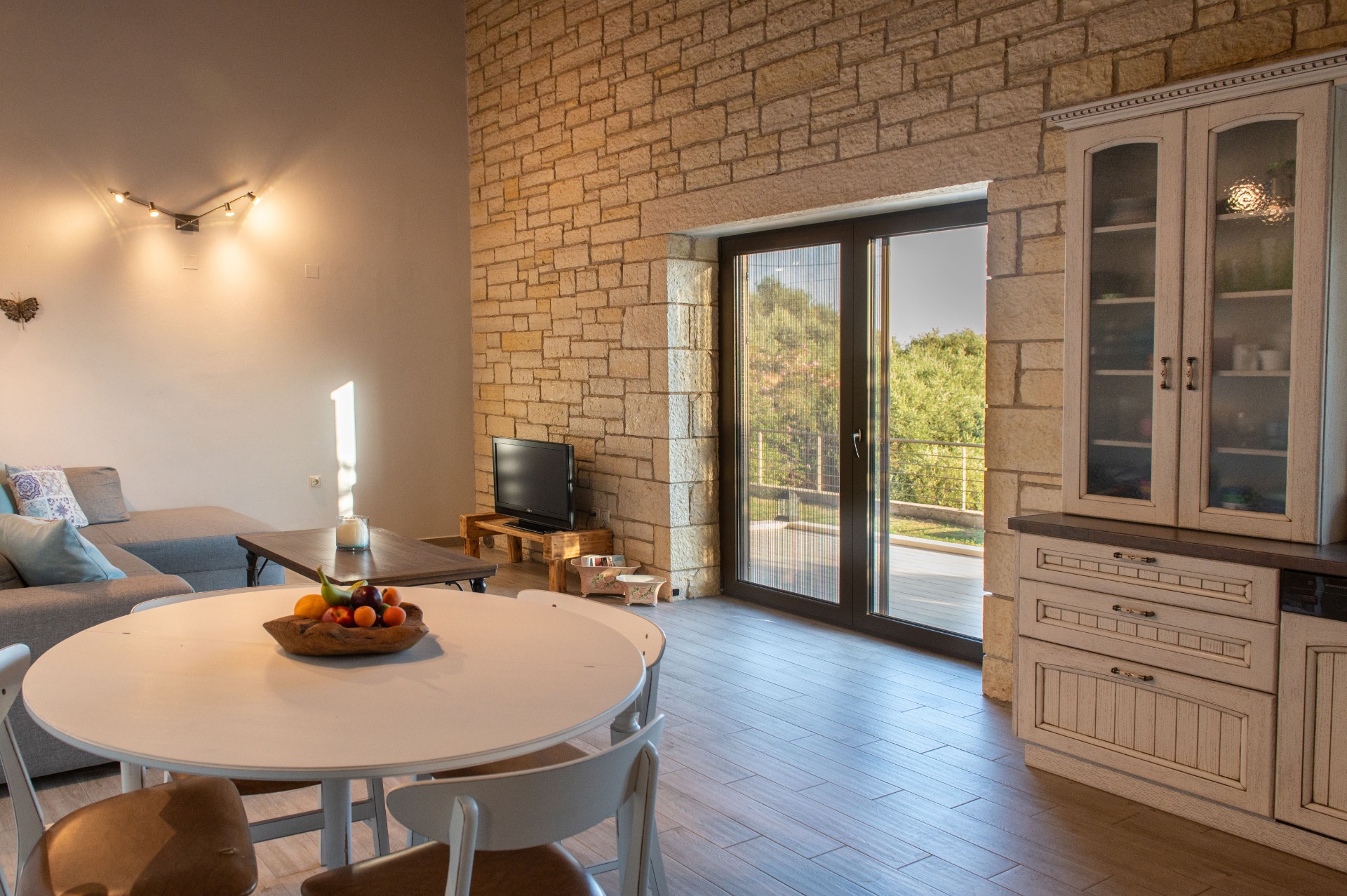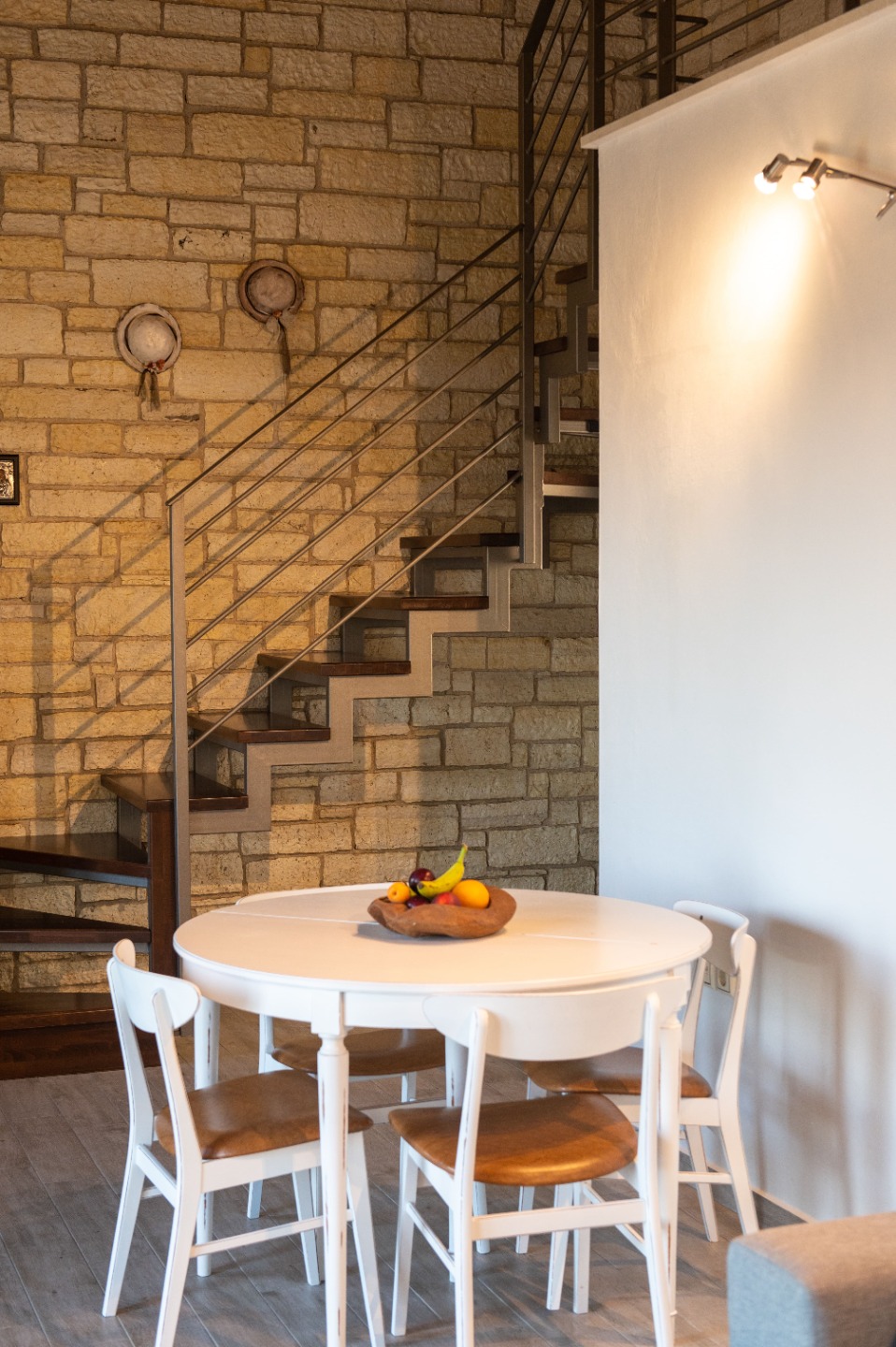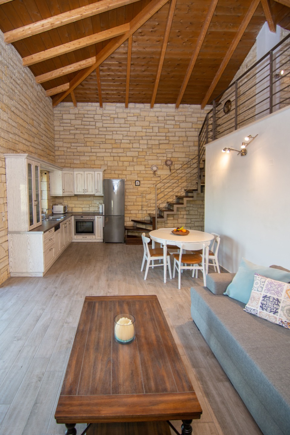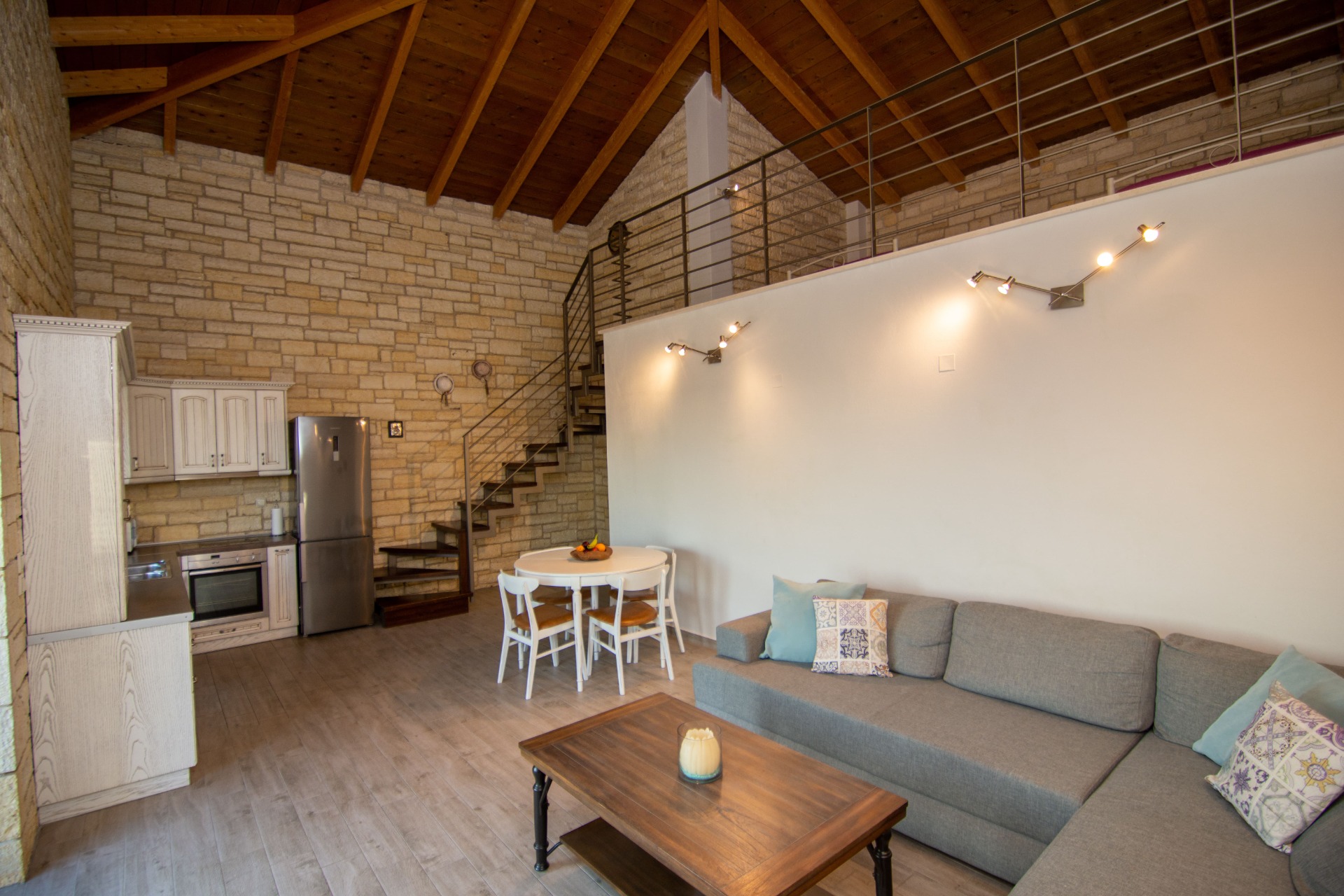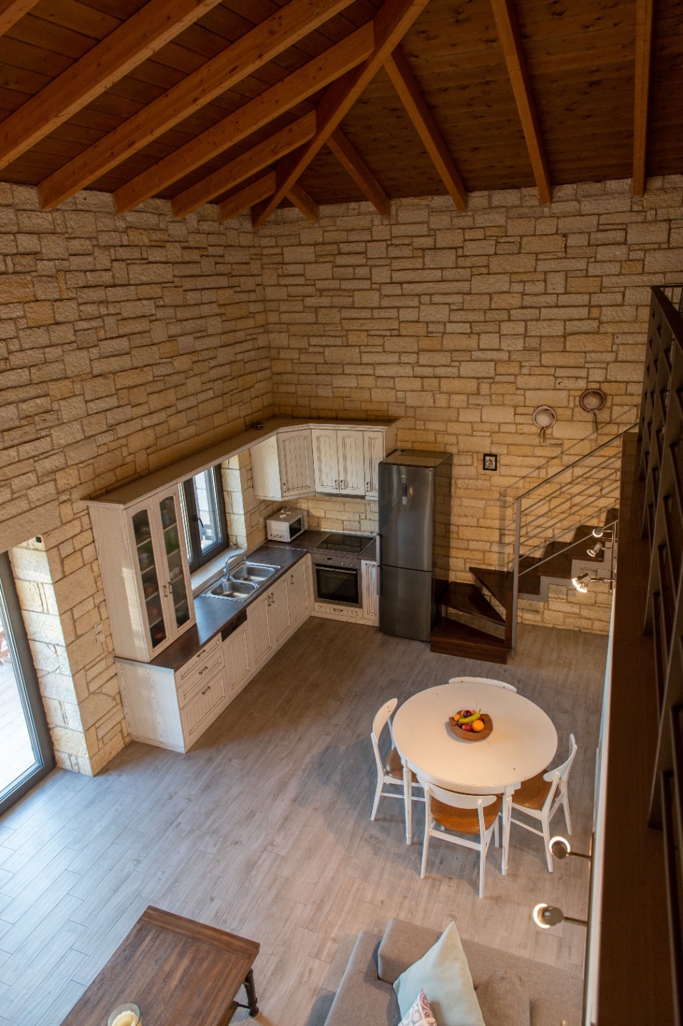 Αποτελεί έναν μοναδικό συνδυασμό εξωτερικού χώρου με πέτρα ( απόλυτα εναρμονισμένο στο φυσικό τοπίο) και εσωτερικού μοντέρνου σχεδιασμού.