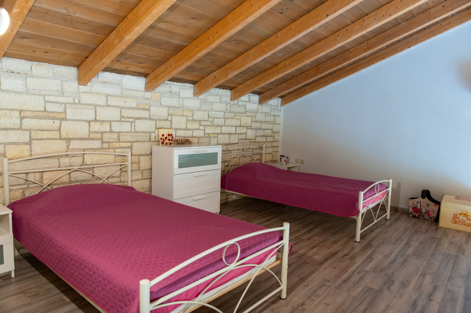 Το εξωτερικό της κατοικίας είναι όμορφα διαμορφωμένο με πέτρα. Υπάρχει η δυνατότητα δημιουργίας πισίνας, καθώς και χώρος στάθμευσης αυτοκινήτου.